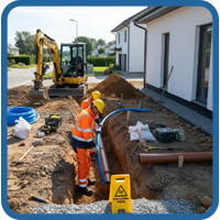 Przyłącza wodno-kanalizacyjne to instalacje łączące sieć wodociągową oraz kanalizacyjną z budynkiem, zapewniając dostęp do bieżącej wody i odprowadzanie ścieków. Montaż przyłączy wymaga uzyskania odpowiednich pozwoleń oraz przeprowadzenia prac ziemnych i instalacyjnych. Prawidłowo wykonane przyłącza są kluczowe dla bezpieczeństwa sanitarnego oraz komfortu użytkowników budynku.